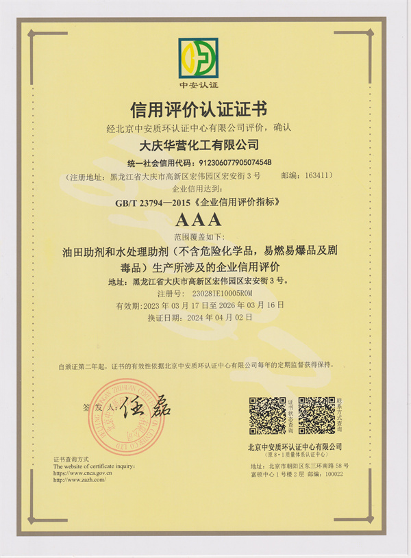 信用评价认证证书